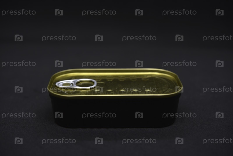 Жестяная банка на черном фоне. Железная банка консервов