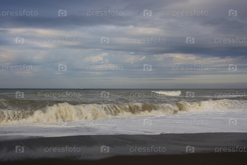 Шторм на Черном море на пляже Ривьера в городе Сочи