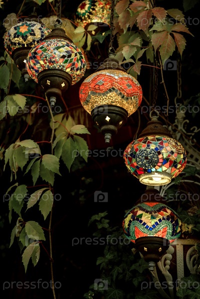 Гирлянда из традиционных разноцветных турецких мозаичных светильников
