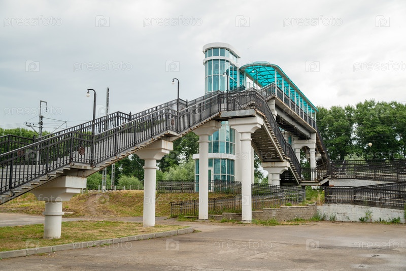 Надземный пешеходный переход с высокой лестницей через дорогу