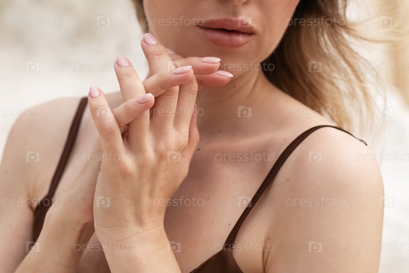 Женщина сжимает руки крупным планом