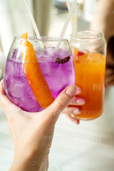 Два человека аплодируют со стаканами, наполненными освежающими летними коктейлями в руках