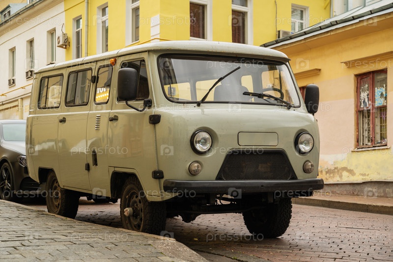 Ретро-автобус уаз по прозвищу буханка припарковался на улице