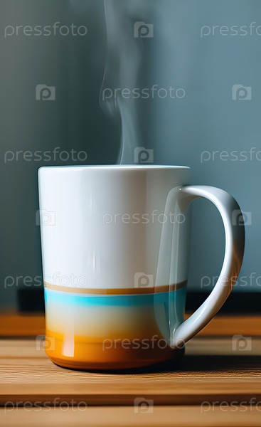 Керамическая кружка с горячим напитком на деревянном столе