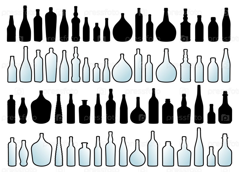 Набор силуэтов стеклянных бутылок