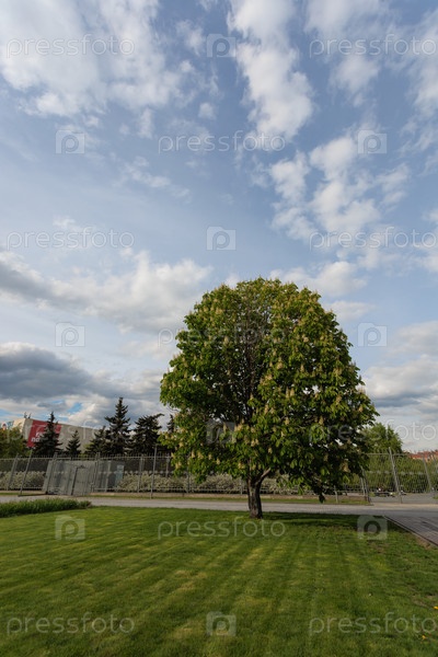 Дерево каштан в цвету
