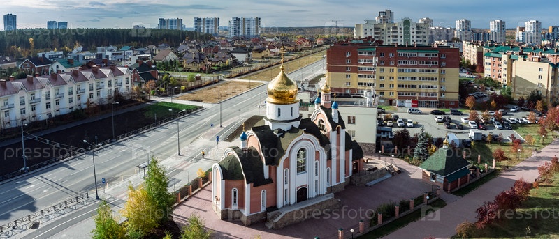 Вид с воздуха на церковь во имя святого равноапостольного князя Владимира в Академическом районе Екатеринбурга