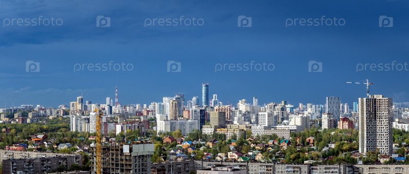 Рассветные облака над мегаполисом раннего заката