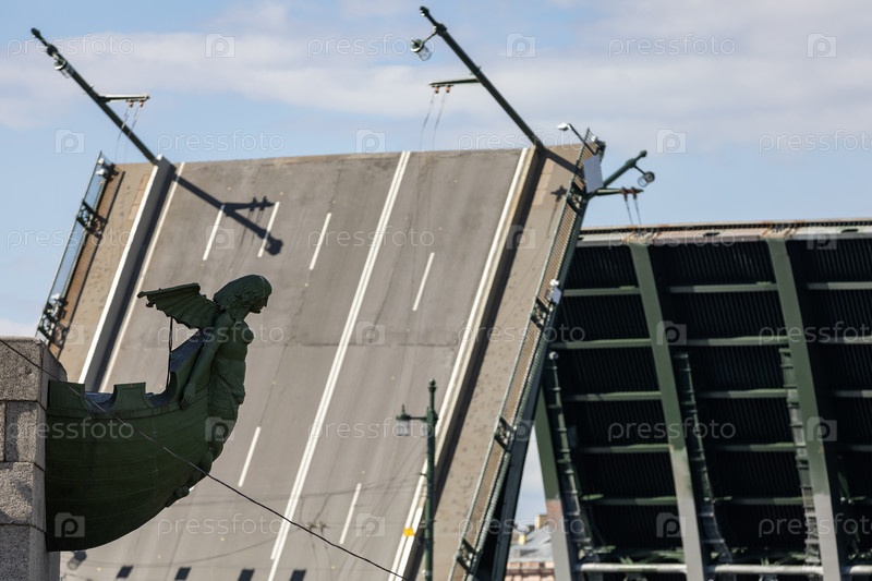 Россия. Санкт-Петербург. Ростры ростральной колонны на фоне Биржевого моста. Россия. Санкт-Петербург. Ростральная колонна на фоне Биржального моста