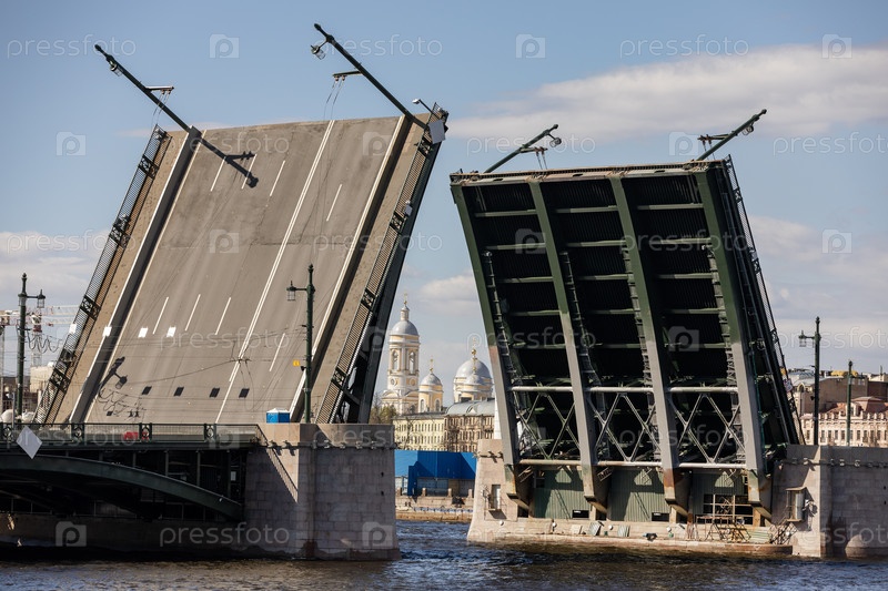 Россия. Санкт-Петербург. Разводившийся фон Биржевого моста во время ремонта. Россия. Санкт-Петербург. Разведённый фона обменного моста во время ремонта