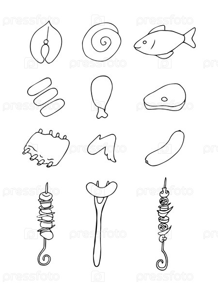 Набор рисованной каракули барбекю иконки