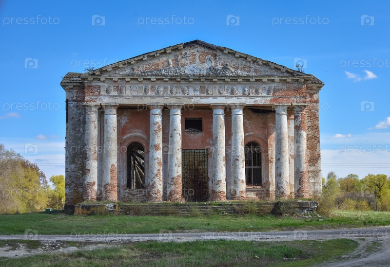 Заброшенная православная церковь, заброшенный храм с колоннами