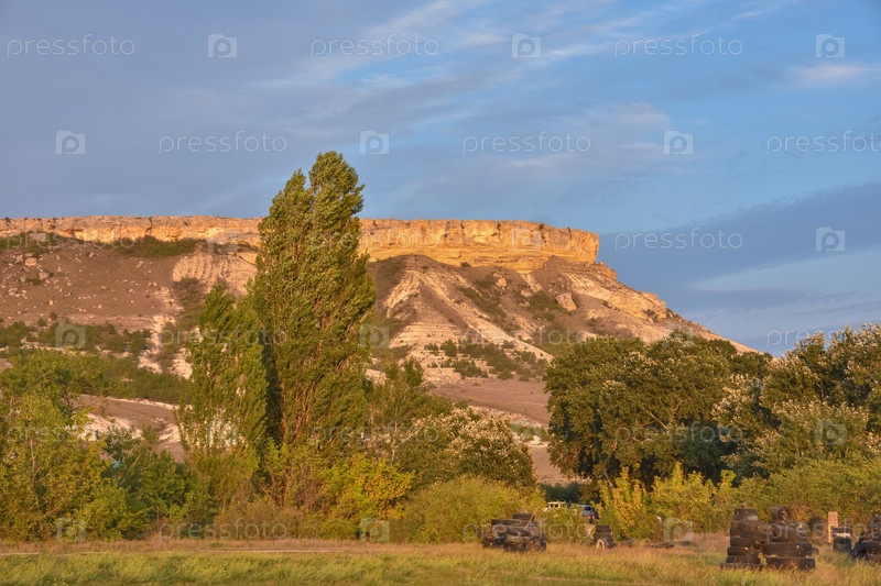 Белая скала летом на фоне неба