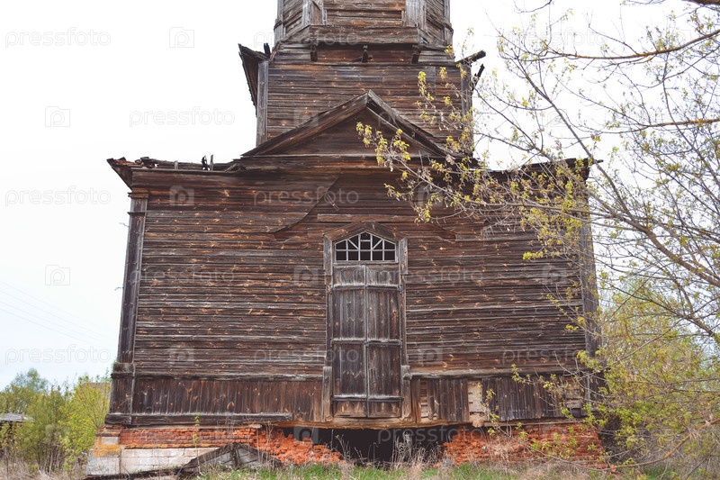 Заброшенная деревянная церковь, разрушенный деревянный храм, деревянная заброшенность