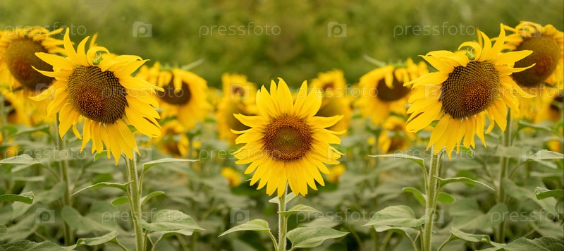 Желтые подсолнухи, цветущие в сельскохозяйственном поле, размер горизонтального баннера