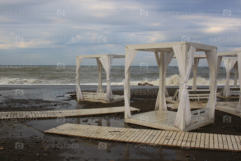 Шторм на Черном море на пляже Ривьера в городе Сочи