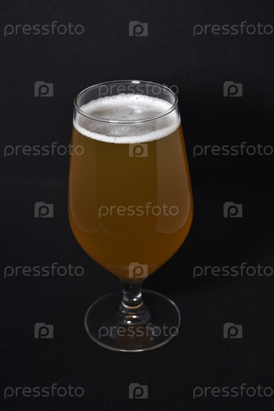 Стакан светлого пива на черном фоне. Свежее пиво из стакана
