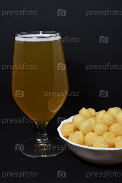 Стакан светлого пива и закуска на тарелке. Пиво с закуской. Закуска из соленой кукурузы