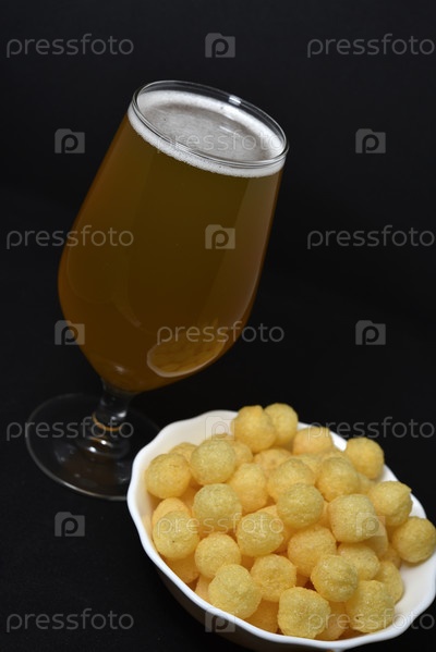 Стакан светлого пива и закуска на тарелке. Пиво с закуской. Закуска из соленой кукурузы