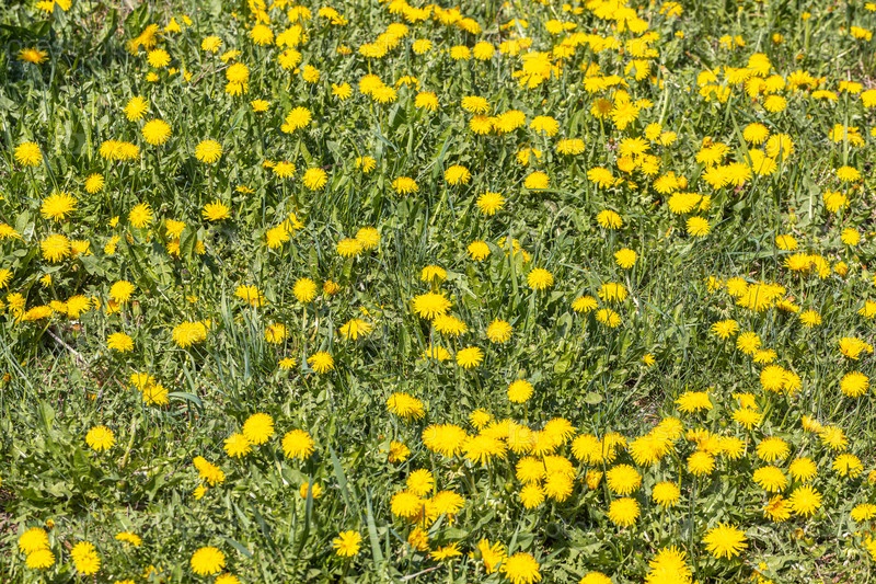 Желтые одуванчики. Яркие цветы одуванчиков на фоне зеленых весенних лугов