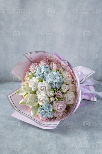 Букет зефира на темном фоне, праздничное угощение для ценителей и гурманов