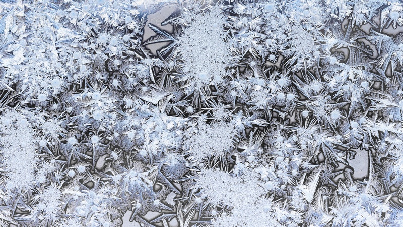 Замерзший лед на поверхности оконного стекла крупным планом