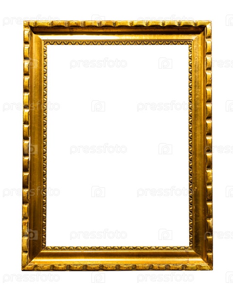 Ретро вертикальная золотая деревянная фоторамка изолирована