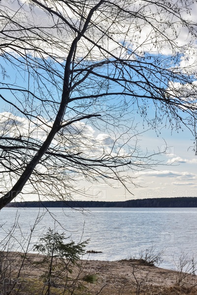 Облачное небо над водой. деревья на переднем плане