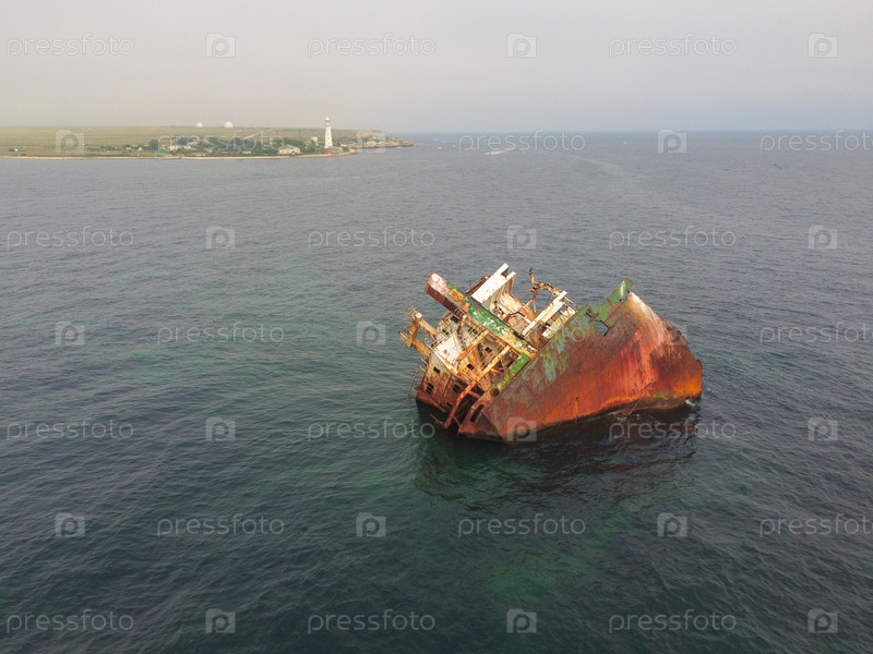 Затонувший корабль, севший на мель транспортный корабль, ржавый остов корабля