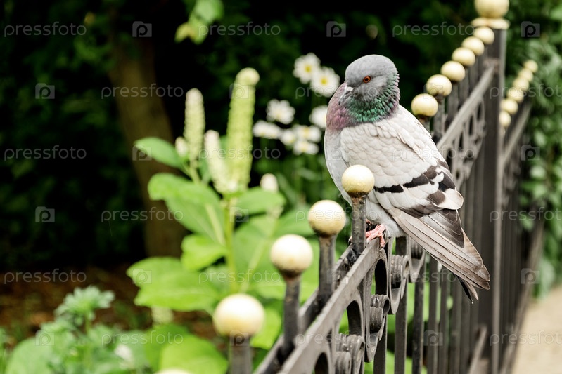 Голубь сидит на металлическом заборе
