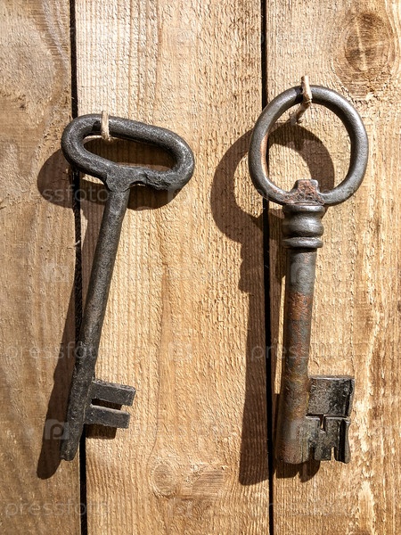 Старые ключи от металлических дверей на деревянной поверхности