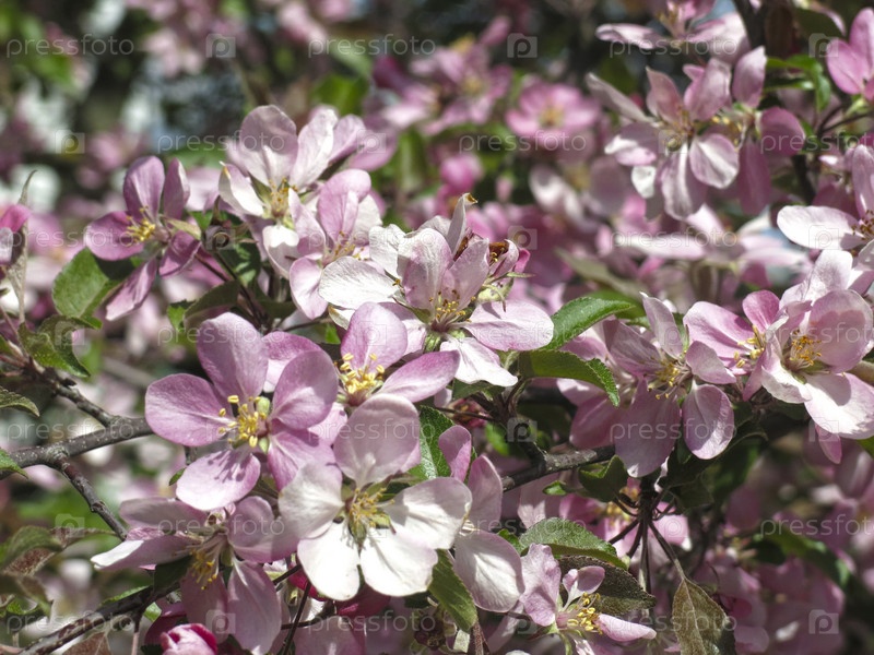Яблоня цветет розовыми цветами в мае
