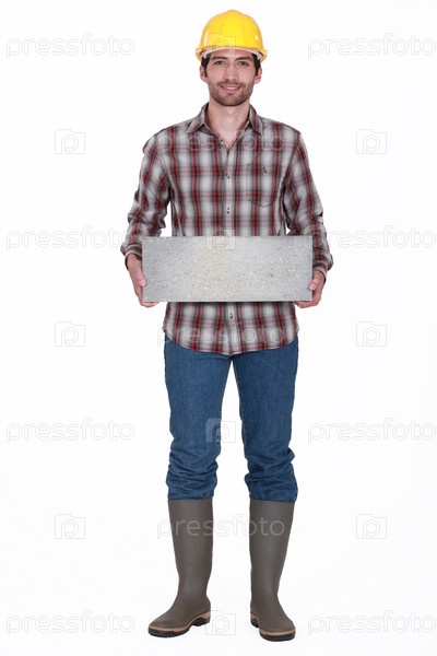 Рабочий несет кирпич