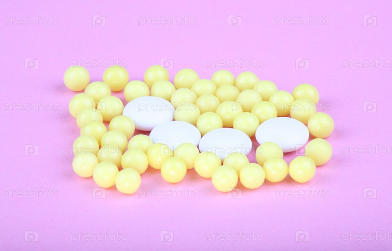 Желтые витамины на розовом фоне