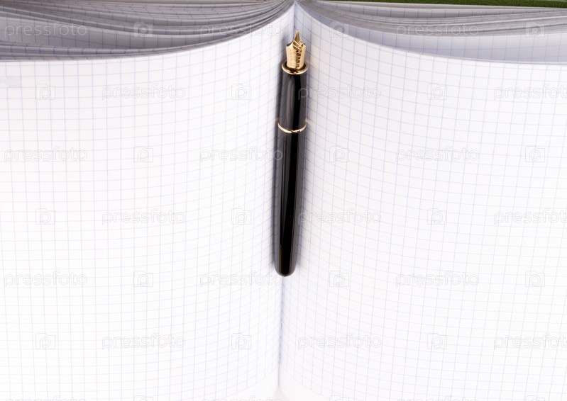 Перьевая ручка на бумажном блокноте