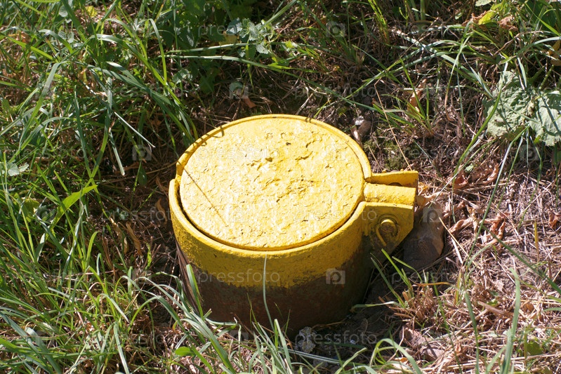 Желтый газовый люк в сухой солнечный летний день