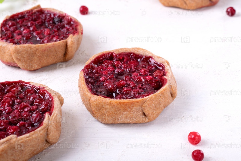 Калитка пирог, карельский пирог, с брусникой на белом столе