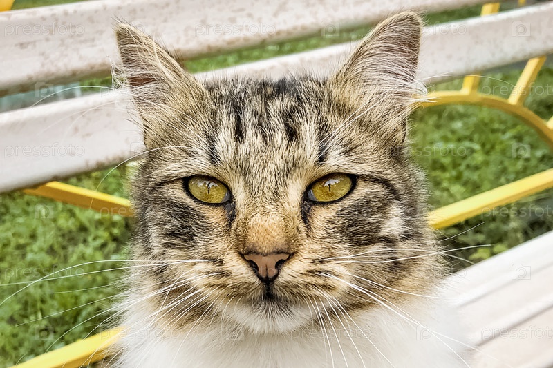 Портрет милой полосатой кошки. Бездомные животные, концепция усыновления домашних животных