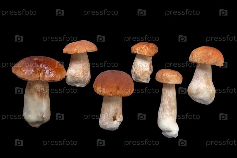 Группа собранных подберезовиков на темной поверхности