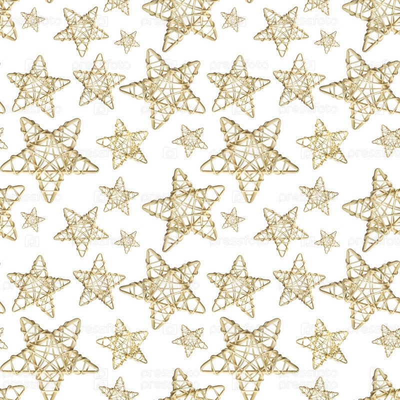 Бесшовный узор с рождественским украшением плетеной звезды из ротанга на белом фоне
