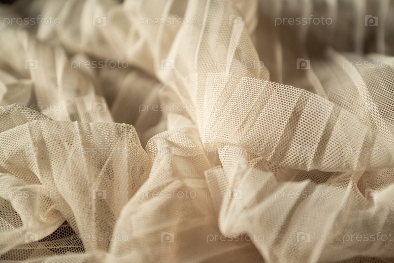 Драпированный бежевый тюль текстильный фон