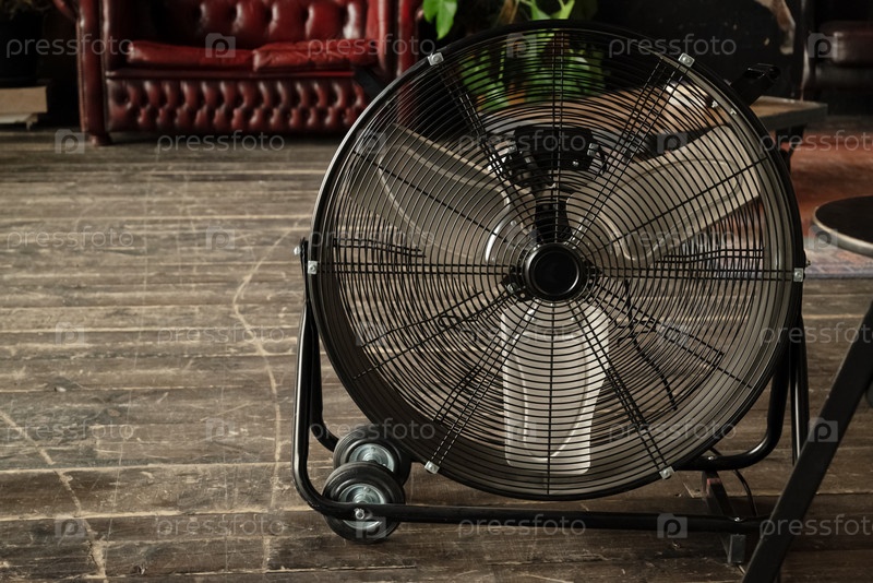 Круглый вентилятор на деревянном полу в комнате