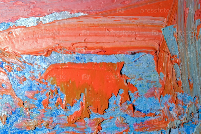 Текстура художественных масляных мазков на холсте красного и синего цвета
