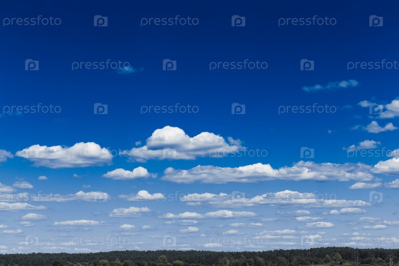Глубокое синее небо с белым фоном облаков над линией горизонта