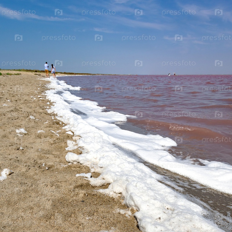 Широкоугольная панорама розового озера Сасык-Сиваш в западном Крыму
