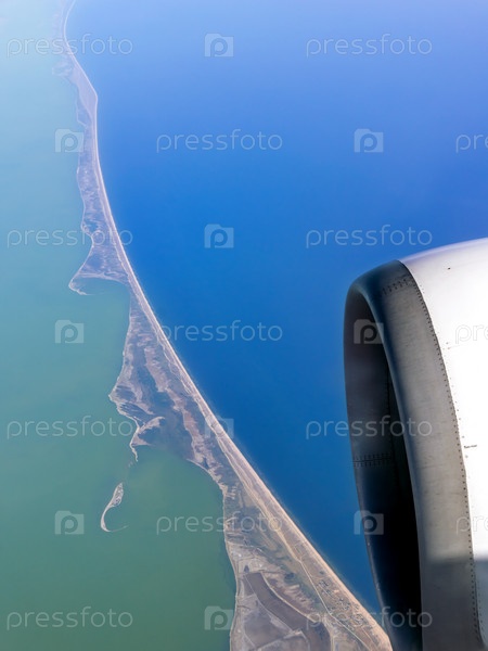 Вид с самолета на Арабатскую стрелку и озеро Сиваш