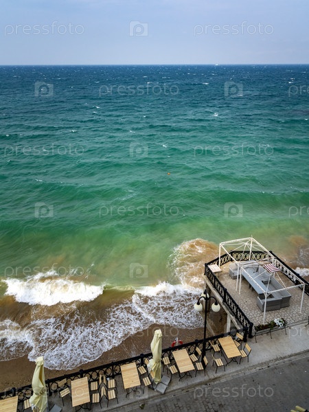 Вид на западную сторону Черного моря от комплекса Наш парус в Каче западный Крым