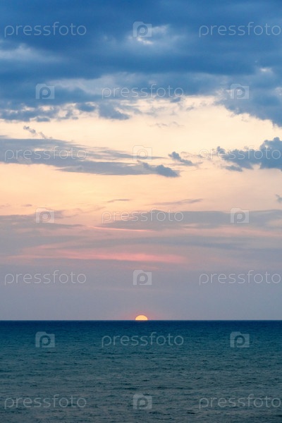 Закат на море в облаках с солнечными лучами