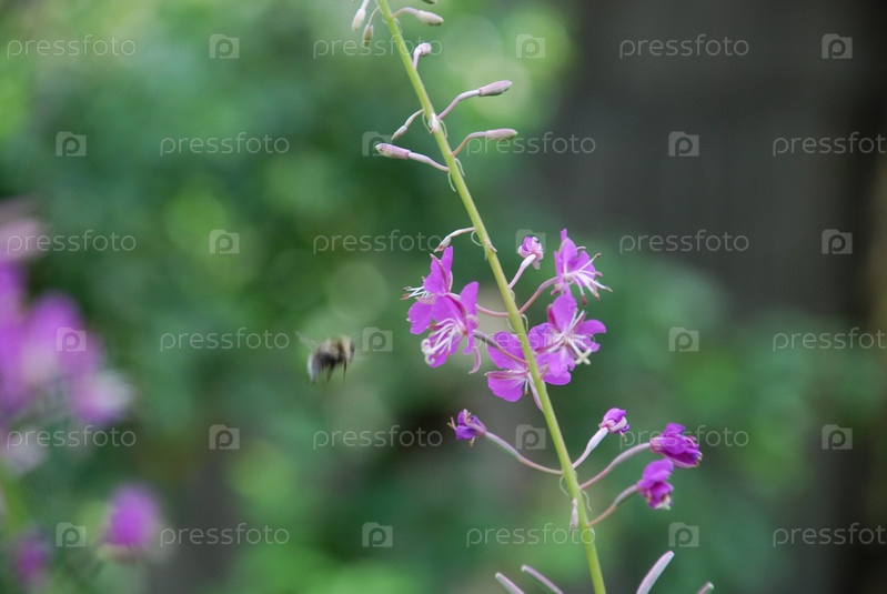 Пчела собирает нектар с цветов