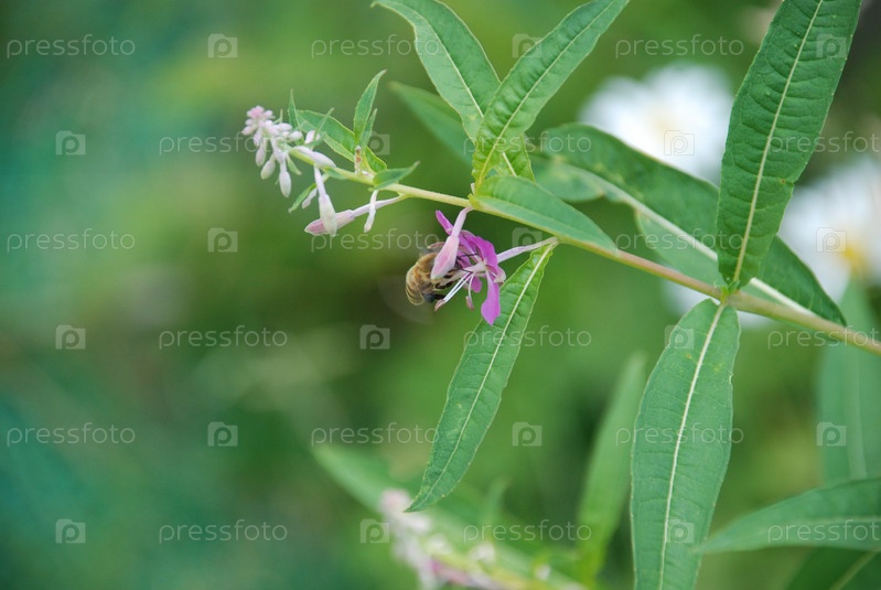 Пчела собирает нектар с цветов